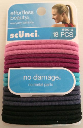 -. Title : Scunci No Damage Hair Ties, Pink, Purple, Teal, Blue and Black, 18 Pieces-Pack of 4