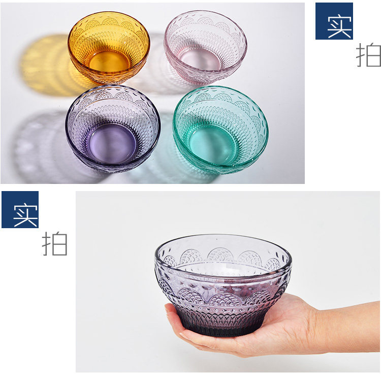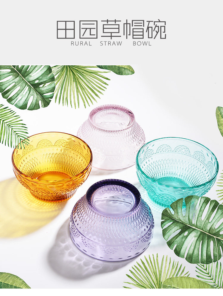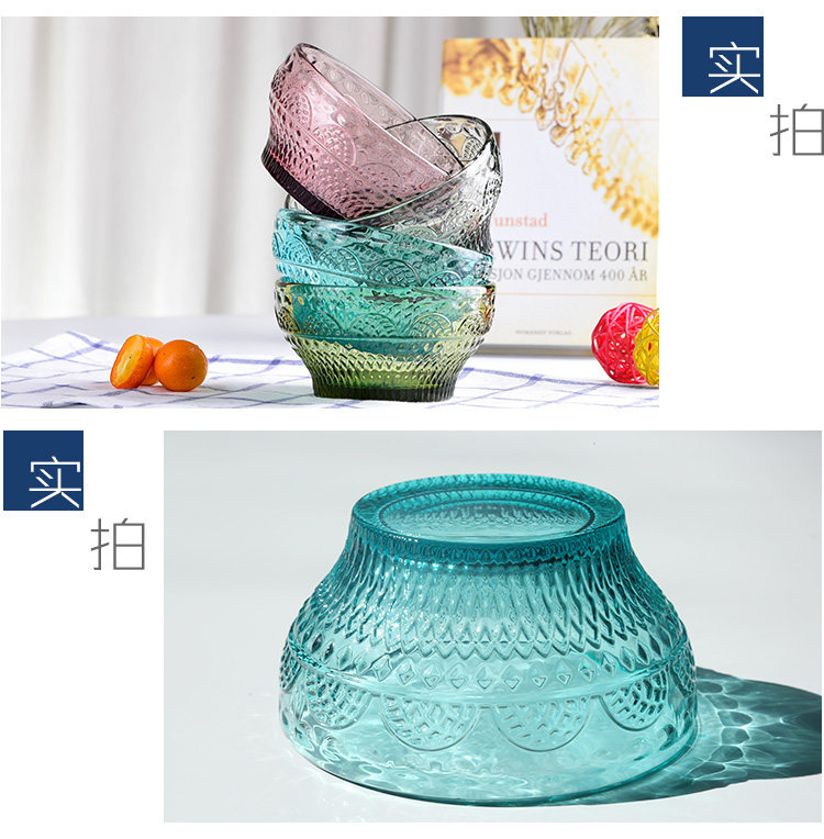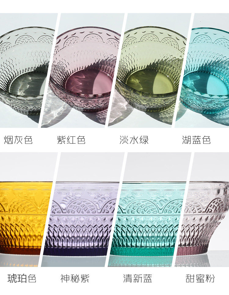 彩色玻璃碗水果沙拉碗家用耐热欧式碗创意餐具泡面碗汤饭碗