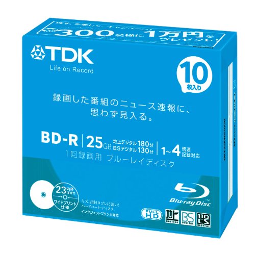 TDK LoR recording for Blu-ray Disc cash back campaign model BD-R 25GB 1-4 speed white wide printable 10 sheets 5mm slim case BRV25PWB10UB