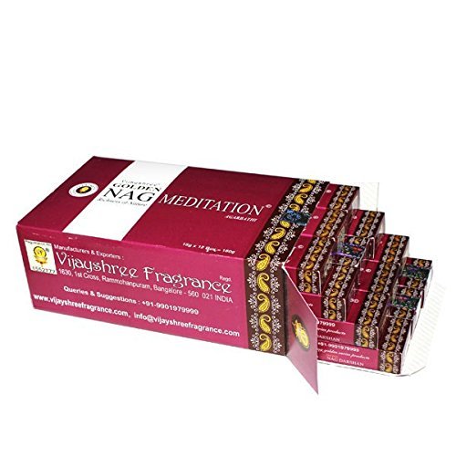 This listing is for 12 x 15 gram boxes of Vijayshree GOLDEN NAG MEDITATION INCENSE STICKS. These incense sticks have a pure soothing sandalwood fragrance that lingers on and on.