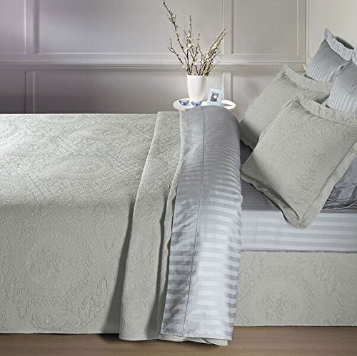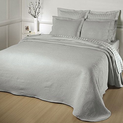 Studio : Europa Fine Linens Publisher : Europa Fine Linens Product Description Add a touch of elegance to your room with this European style pattern from Europa Fine Linens Kensington Rose Matelasse bedding. The blend of 80% cotton and 20% polyester makes for a soft long-lasting fabric. The bedding is jacquard woven with yarn dyed colors for unique color reproduction. It has overlock scallop stitching and is antique garment washed for extra softness. Oversized for lasting use and shrinkage control. The bedspread is preshrunk with residual shrinkage between 2%-5%. For best results, machine wash in normal cycle with cold water. Tumble dry low and remove promptly. Wash colors separately and do not bleach. Imported from Portugal. The bedspread is available in Twin (81" x 110"), Full (96" x 110"), Queen (102" x 120") and King (120" x 120") in Antique, White, Dove and Yellow. Finish the European style with matching shams. The fabric weight is 400 GSM. 0