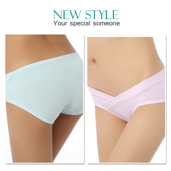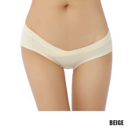 ローライズで前がカシュクールデザインになっているので、大きくなってくるおなかにも対応◎