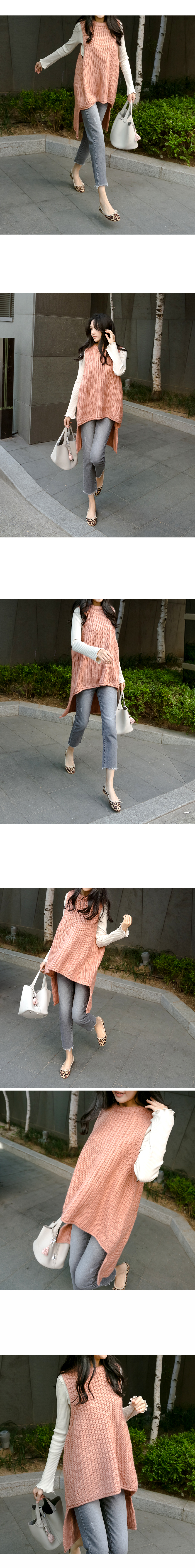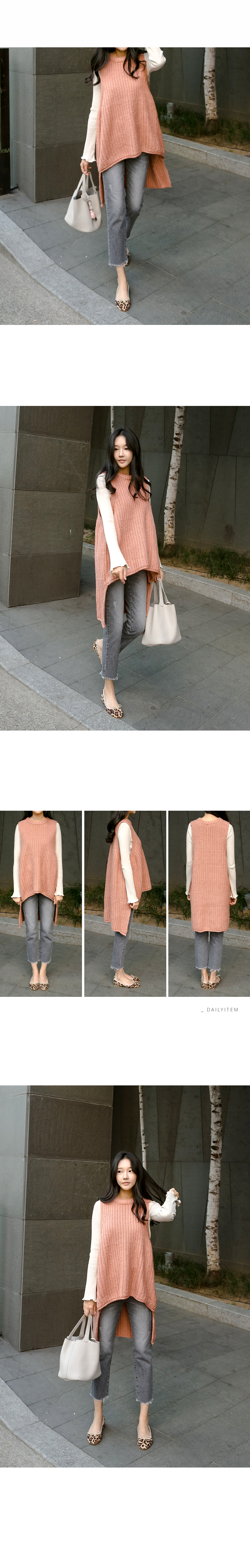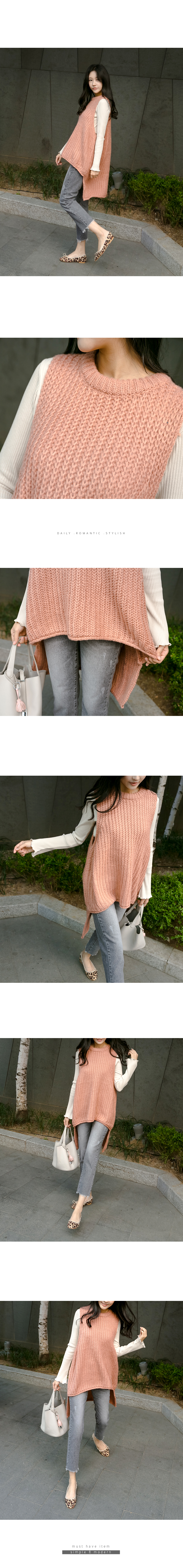포근한 느낌의 앞, 뒤 언발 니트 베스트