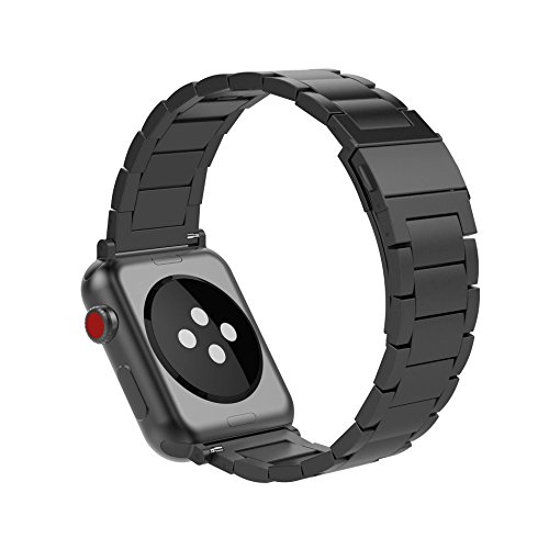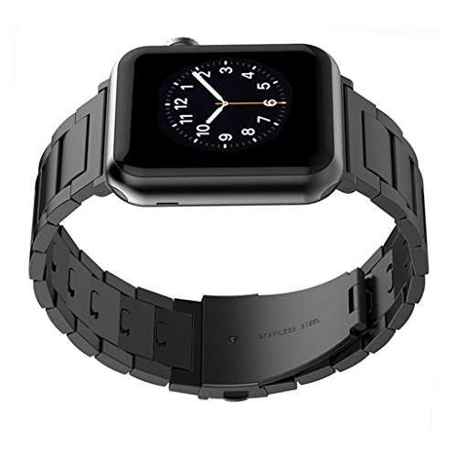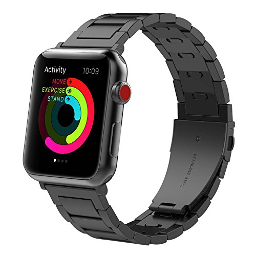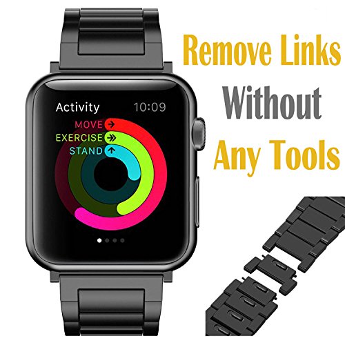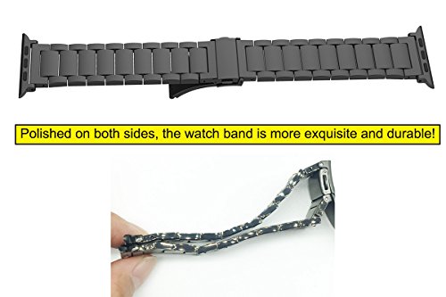 KINPEI Apple Watch Series 3 /2 /1 Sport and Edition 42mm Bands, Stainless Steel Metal Link Bracelet Double Electroplating iwatch Replacement Band (Remove Links by Hand) Black