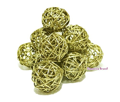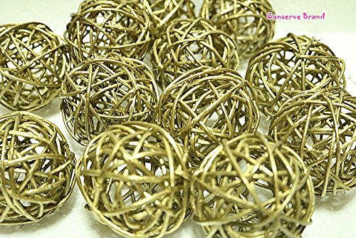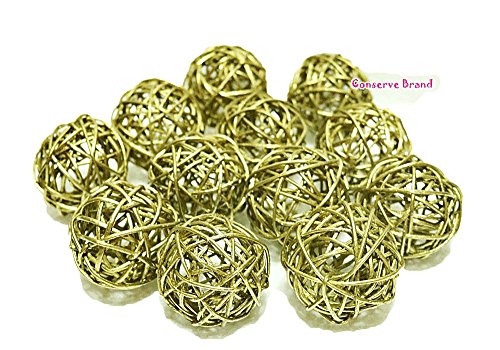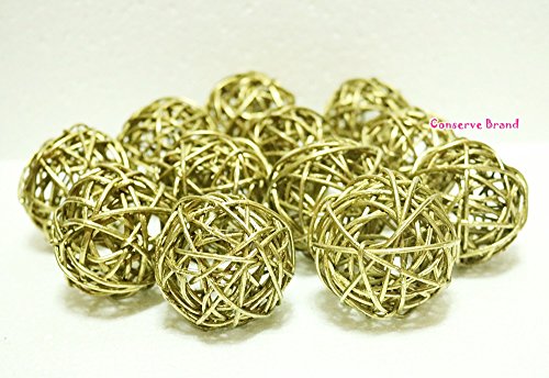 Christmas Gifts : Small Golden Rattan Ball, Wicker Balls, DIY Vase And Bowl Filler Ornament, Decorative spheres balls, Perfect For Decoration And Party 2.5 inch, 12 Pcs (Free Gift From Conserve Brand)