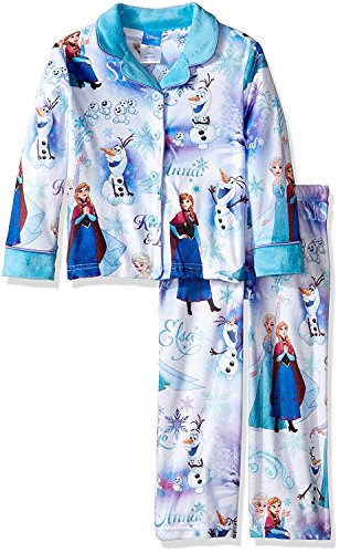 Disney Girls' Big Girls' Frozen Elsa and Anna 2-Piece Minky Pajama Coat Set, White, 8