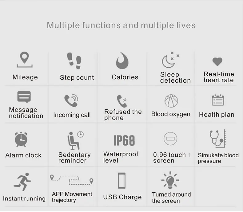 Feature:Sleep Tracker,Complete Calendar,Call Reminder,Shock Resistant,Stop Watch,LED display,Fitness Tracker,Bluetooth,Auto Date,Message Reminder,Water Resistant,Heart Rate Monitor,Back Light,Alarm,Perpetual Calendar