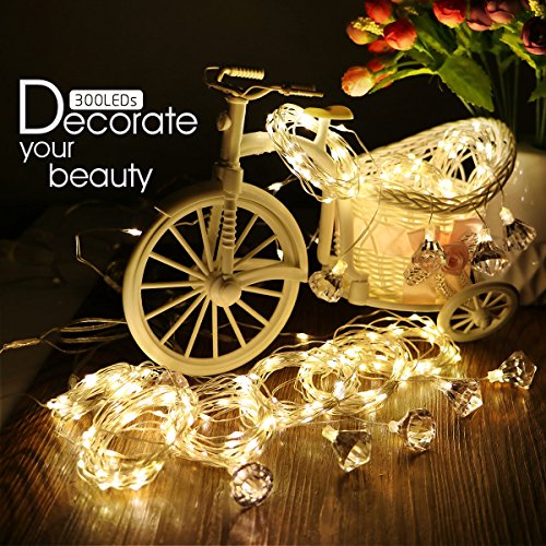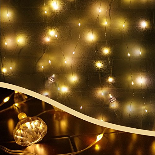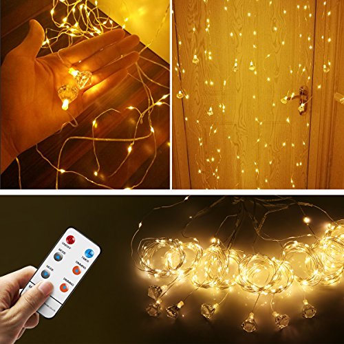 Lemonbest 3Mx3M 300 LED String Fairy Light Copper Wire Curtain Lights Indoor Outdoor Decorating Christmas xmas String Garden Party Fairy Wedding Warm White Curtain Light with RF Remote, UL Listed