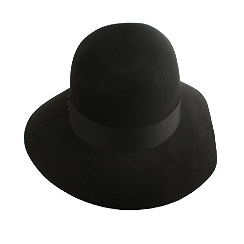 -. Title : Winter Soft Wool Felt Ribbon Fedora Floppy Panama 3" Wide Brim Dress Hat Black