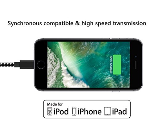 EXTRA CONVENIENCE: Long length lightning cord is perfect for you to use your device while charging. You can connect your iPhone or other Apple devices farther than ever. COMPATIBILITY WITH: iPhone 7/iPhone 7 Plus iPhone 6s plus / 6s / 6 plus /6 iPhone 5s / 5c / 5 / SE iPad Air / Air 2 iPad Pro / iPad mini / mini 2 / mini 3 / mini 4 iPod nano (7th generation)/iPod touch (5th generation)