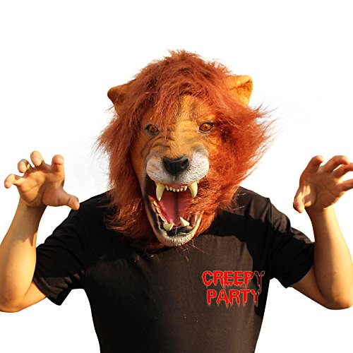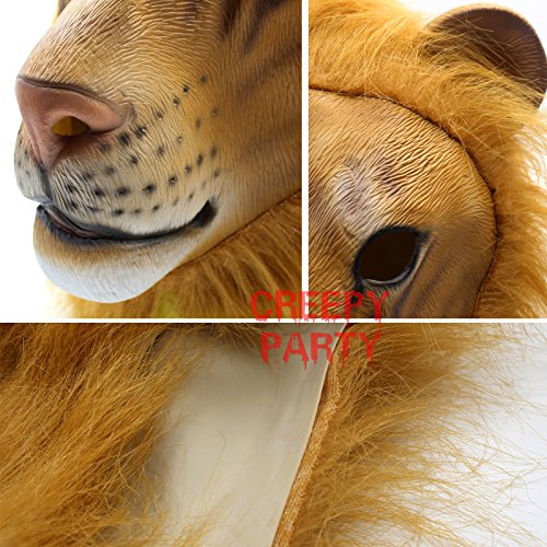 -. Binding : Apparel -. Brand : CreepyParty -. Department : unisex-adult -. Feature : The details are just amazing, from the furry mane to sharp teeth, red ears and face that resembles the wrinkly surface of a real lion's, especially those mean looking yellow eyes. -. ProductGroup : Apparel -. ProductTypeName : ACCESSORY -. Title : CreepyParty Novelty Halloween Costume Party Latex Strong Animal Mask