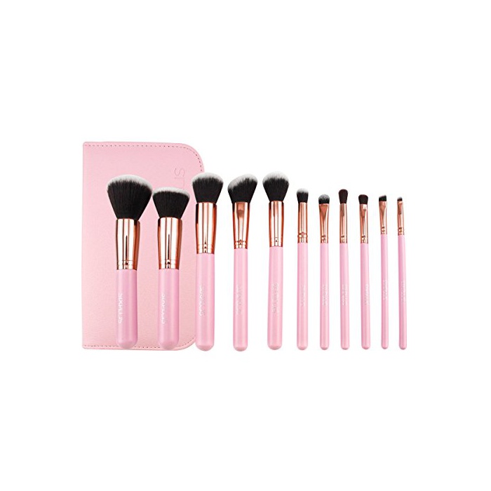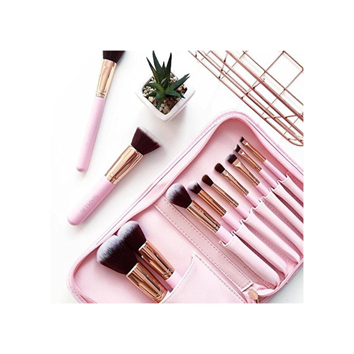 Six Plus 핑크 메이크 브러시11개 세트 브라운 화장 파우치 부착