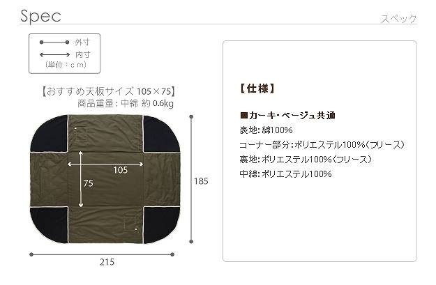 オススメこたつサイズ:約75x105cm