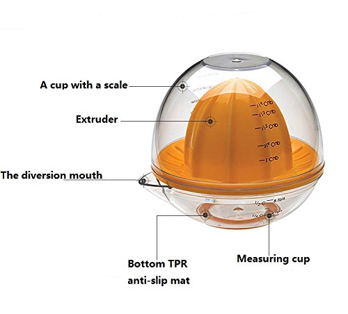 Product Description Progressive International? is your source for the widest range of functional, inventive, and fun kitchen tools and great ideas put into practice. Our in-house designers spend hours in the kitchen coming up with ways to improve on a variety of traditional tasks and tools. Established in 1973, our commitment to quality and service allows us to offer a broad selection of quality kitchenware and other household products. This 1 cup capacity citrus juicer is designed to fit limes, lemons and oranges. This juicer features a domed lid that doubles as a measuring cup and has a non skid base so it won't easily move. It includes printed measurements in tablespoons, cups and millimeters and is made of heavy duty plastic. Dishwasher safe. 0