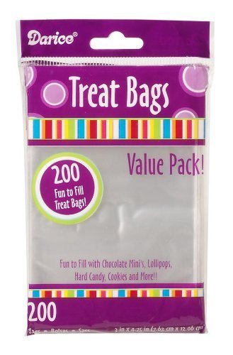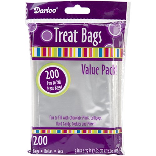 Product Description Perfect for gifts and party favors 200 treat bags for chocolates, lollipops, hard candy, cookies and more Size: 3-inch by 4-3/4-inch Clear polyethylene 0