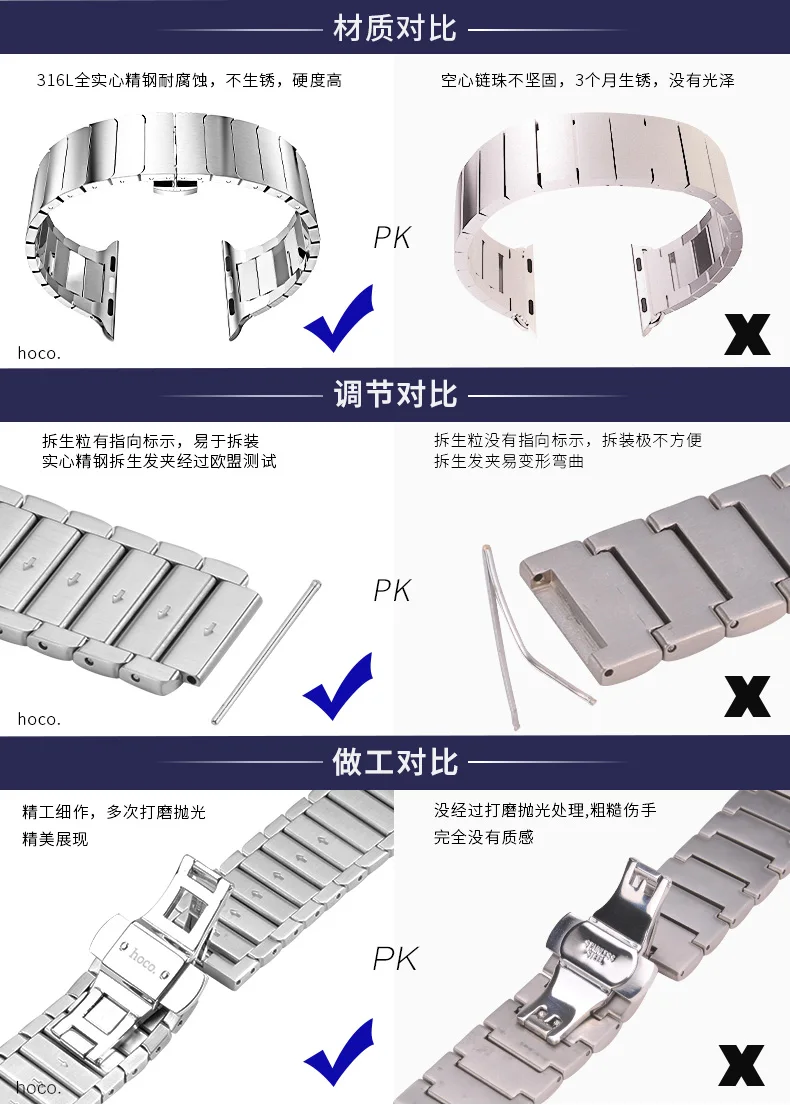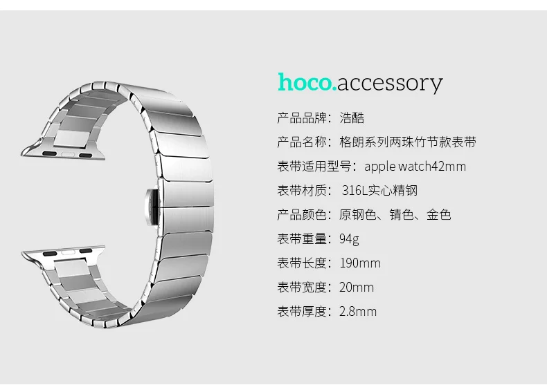 | [해외] 원래 HOCO 손목 애플 시계 스테인레스 스틸 링크 밴드 42 미리메터 나비 버클 스트랩 iWatch 시리즈 1/2 팔찌 |