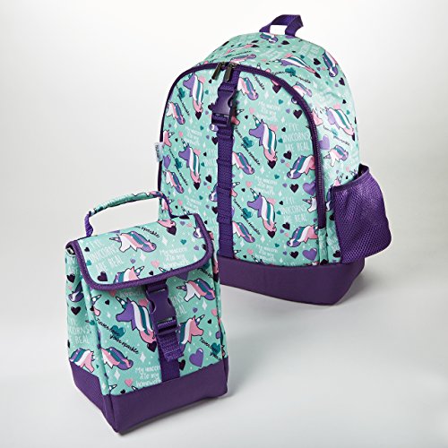Fit & Fresh Kids' Elena School Backpack with Matching Lunch Bag (Aqua Unicorns)