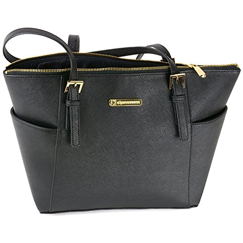 -. Brand : Alpine Swiss -. Department : womens -. Feature : Gold Metal Hardware, Two Outside Pockets / Top Zip Main Pocket is a fully open section with 3 side organizer pockets. One Zip, Two Drop Organizer Pockets Fully Lined Interior / Adjustable Shoulder Drop 3 Positions: 8" 9" or 10" / Height 11" x Depth 5" x Width: 15.5" zip top & 11" at the base. Base 11" x 4" Features 4 Metal Gold Protector/Balance Feet / Trapezoid Shape East West Classic Tote Good For Everyday or Travel. This tote exists on that fine line between Function, Fashion & Style Exquisitely! -. Label : alpine swiss -. Manufacturer : alpine swiss -. Model : By Alpine Swiss -. MPN : Ebro -. PackageQuantity : 1 -. PartNumber : Ebro -. ProductGroup : Shoes -. ProductTypeName : HANDBAG -. Publisher : alpine swiss -. Studio : alpine swiss -. Title : Alpine Swiss Women's Ebro Saffiano Tote Bag Shoulder Purse Handbag