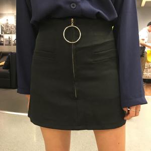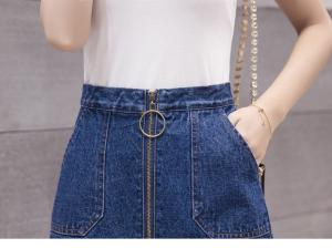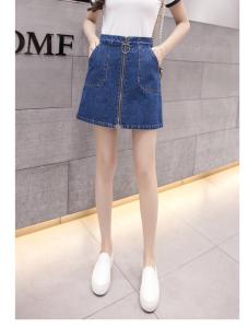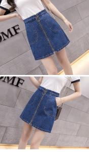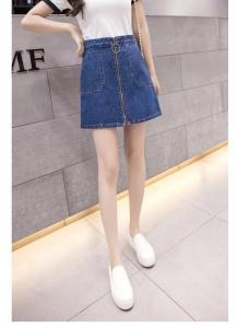 ハイウエストデニムスカート ハイウエスト フロントジップ 台形スカート ミニ丈 春夏 カジュアル デニム プチプラ