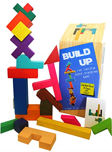 Studio : Azure House Games Publisher : Azure House Games Binding : Toy Product Description Build Up is a game that succeeds in combining strategy and dexterity. It features twenty individual wooden blocks, each a unique shape and color. Each block also has a corresponding card. Players build a tower together by choosing a card from their hand and adding the matching block. The object of the game is to make the next person knock down the tower on their turn. There are also special action cards to really make things interesting. A simple game with hours of play possible. Perfect for any game night or classroom. You can watch how to play and see more fan photos at: Facebook.com/buildupthegame 0