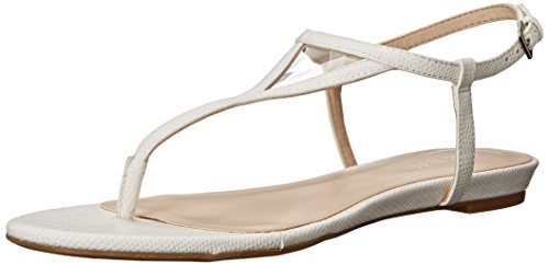 Thong dress sandal in pebbled texture featuring clear triangular inset