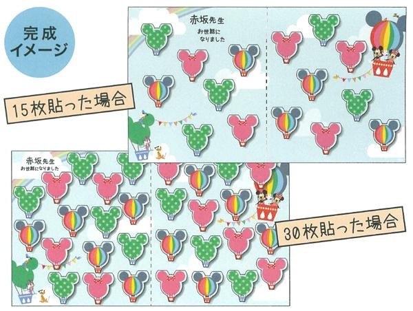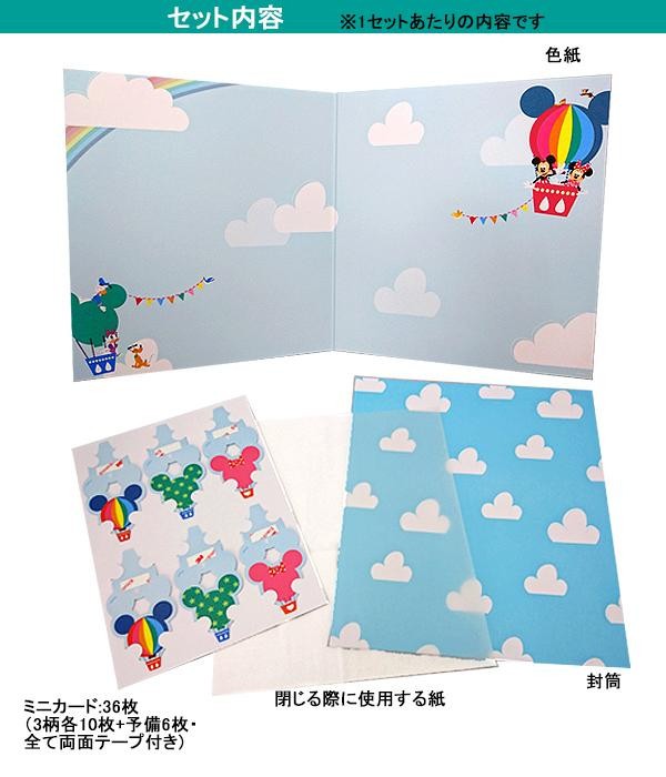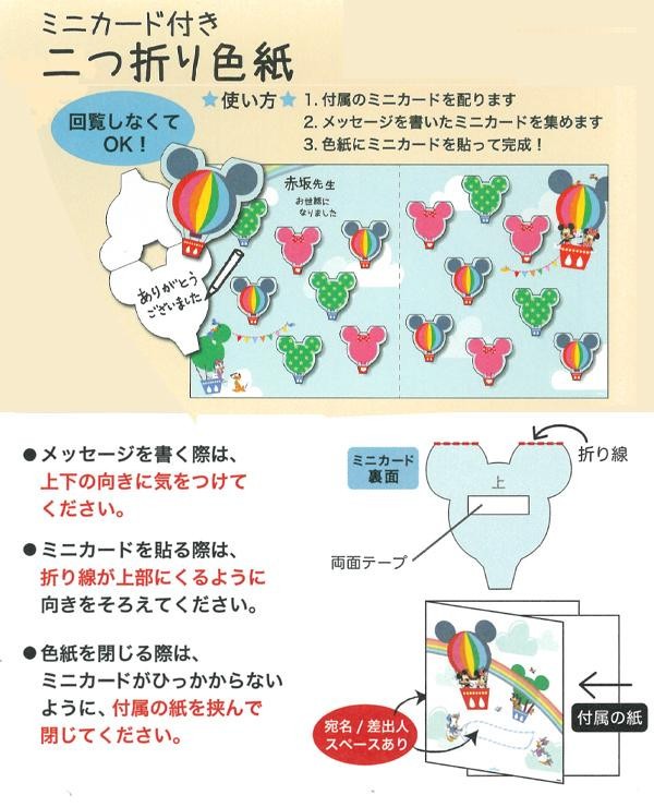 | 付属のミニカードにメッセージを書いて色紙に貼るだけ!!回覧しなくても沢山のメッセージを載せられます。ミニカードはミッキー型の気球イラストで、可愛らしく色紙を彩ります。色紙の縁は金箔仕様です。 |