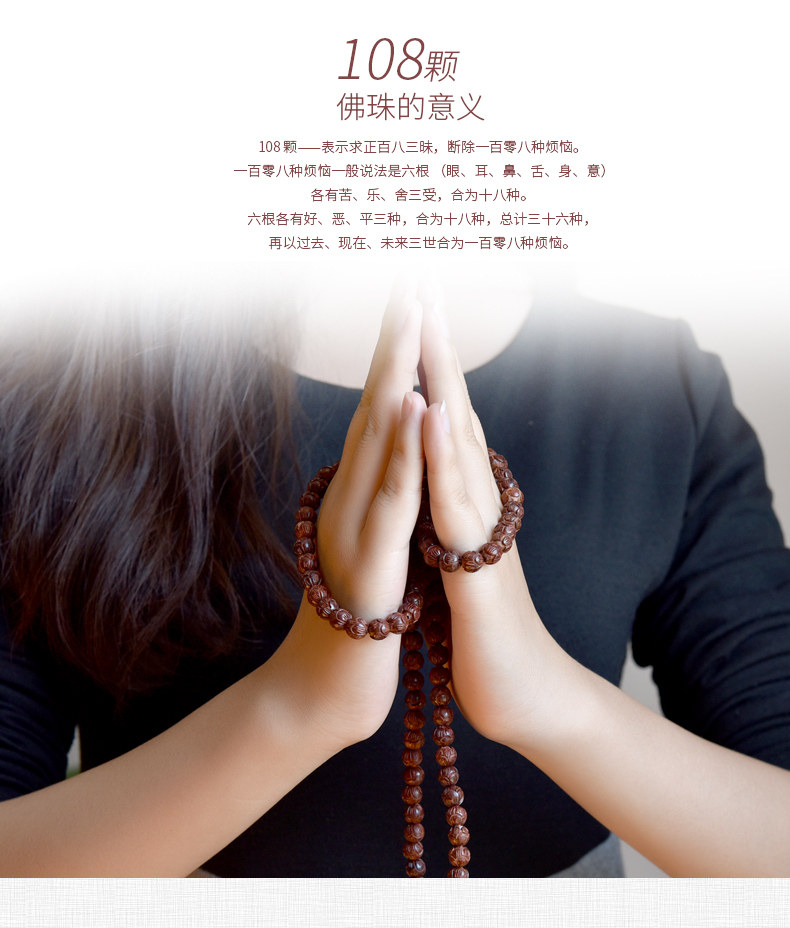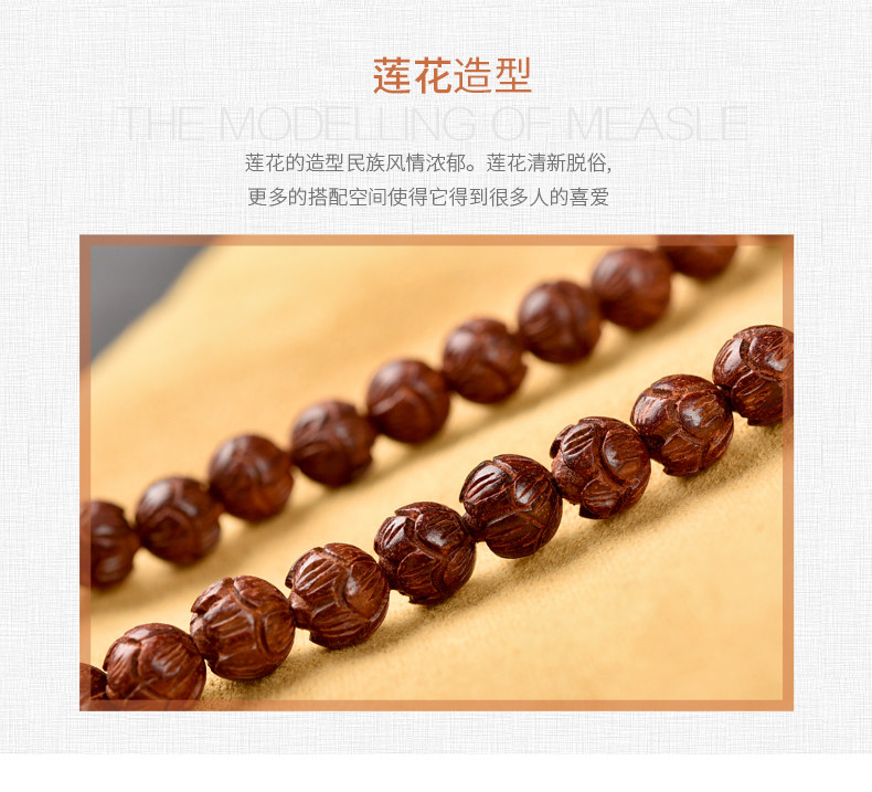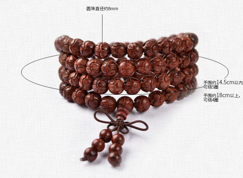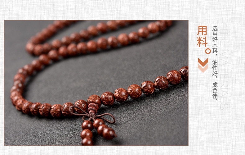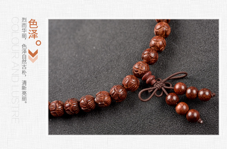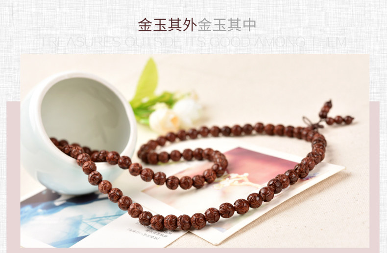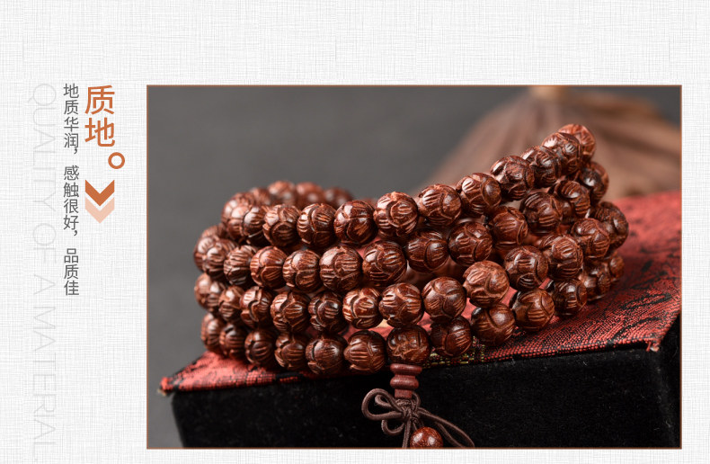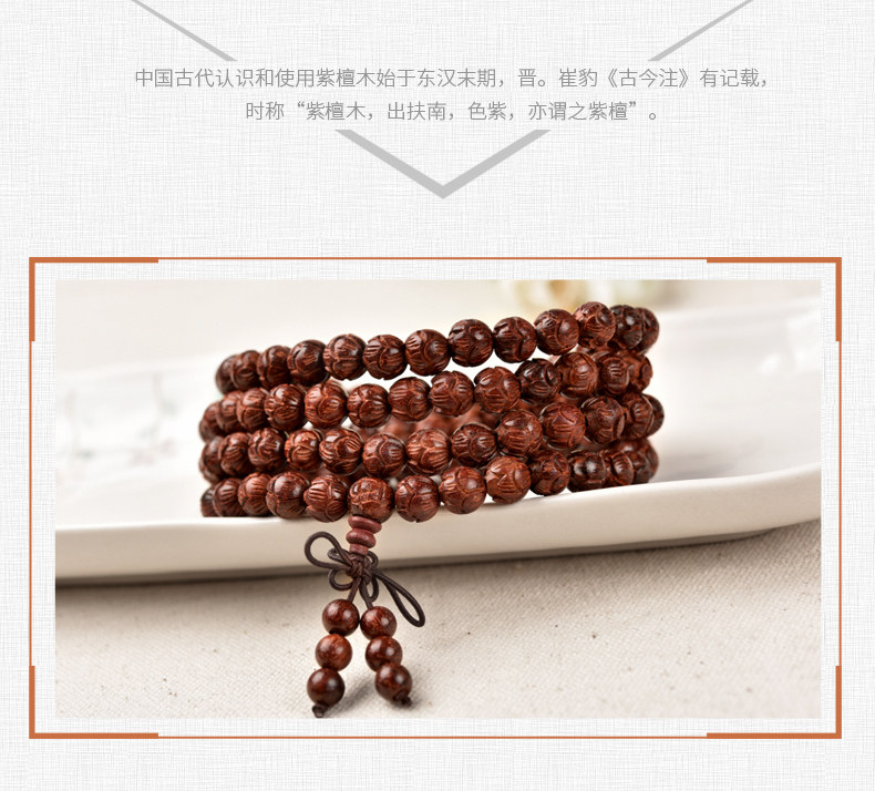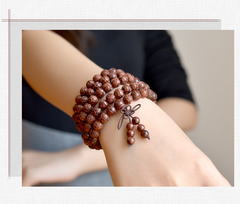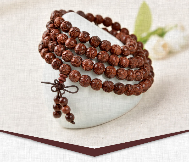 小叶紫檀108颗莲花手串 性价比印度木料多圈佛珠文玩手链男女