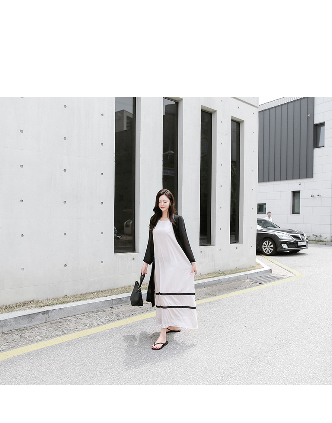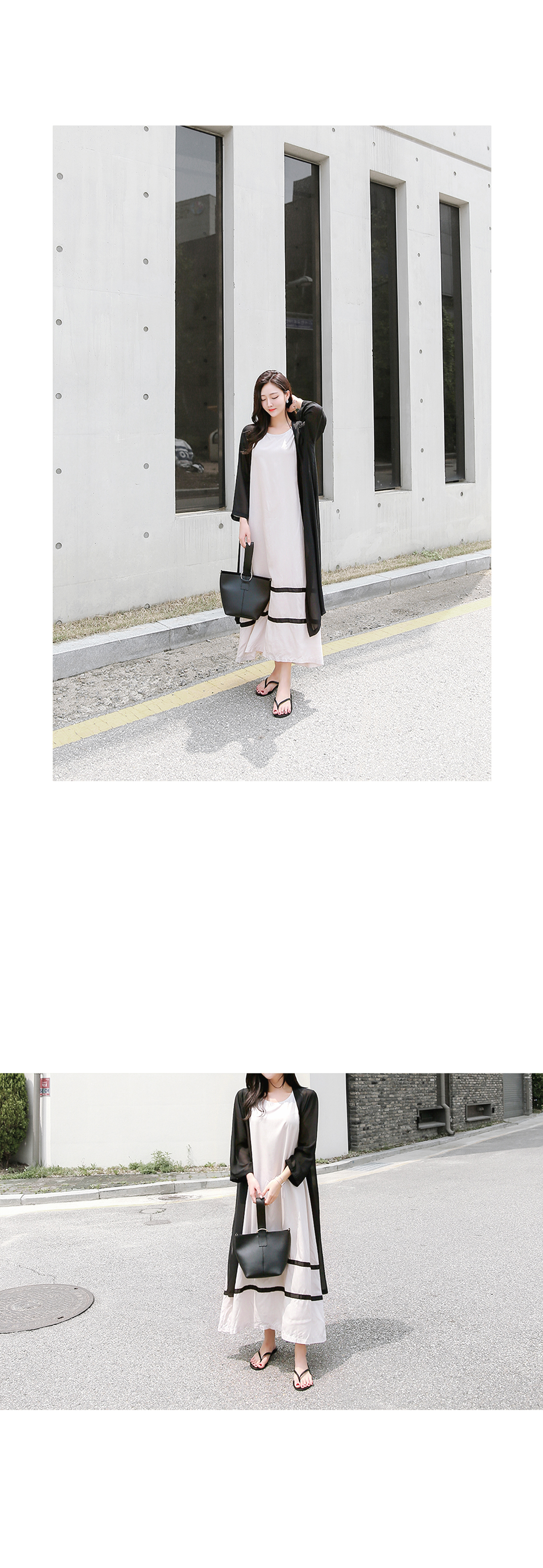 롱~ 하게 떨어지는 실루엣이 매력적인 원피스에요.