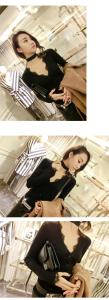 ネックラインと袖口にレースがついたオシャレなカーディガン♪