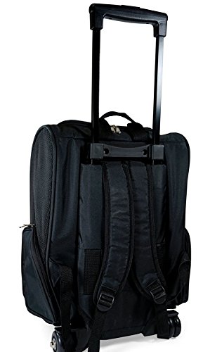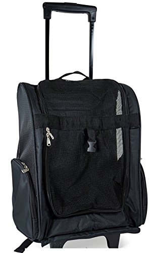 -. Binding : Misc. -. Brand : Barker Brands Inc. -. Color : Black -. EAN : 0722034322698 -. Feature : Large mesh panel in front and on the sides for extra ventilation. / Size: Small/Medium Up to 20 pounds 14 In. x 10 In. x 19 In. (Width x Depth x Height) Measurements are approximate. / High quality wheels can carry up to 20 lbs. / Shoulder straps to double as a backpack when needed. / Interior leash attachment for added security to ensure your pet won't jump out. Airline Approved! This just slides right under the seat where your feet go on the plane. -. Label : Barker Brands Inc. -. Manufacturer : Barker Brands Inc. -. PackageQuantity : 1 -. ProductGroup : Pet Products -. ProductTypeName : PET_SUPPLIES -. Publisher : Barker Brands Inc. -. Size : Up to 20 pounds (14 In. x 10 In. x 19 In.) -. Studio : Barker Brands Inc. -. Title : Barker Brands Inc. Solid BLACK Rolling Backpack Pet Carrier for Dogs & Cats! -. UPC : 722034322698