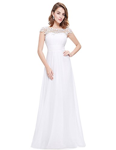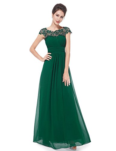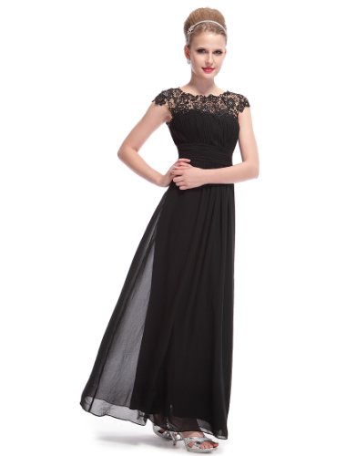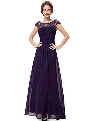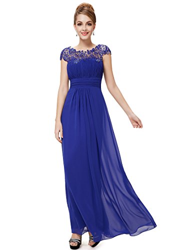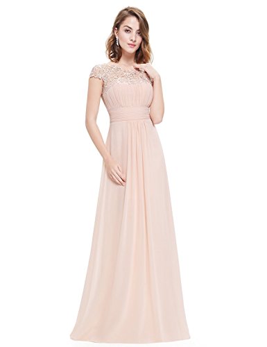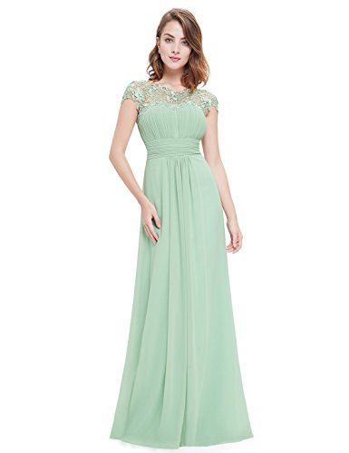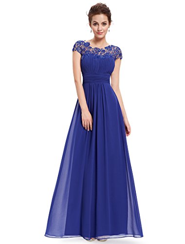 Elegant floor length chiffon evening dress with lacey cap sleeves. Perfect for your next formal occasion whether it be an evening party or even your turn as the mother of the bride or groom. Delicate lace and rhinestones decorate the neckline while the ruching in the bust and waist creates a figure flattering silhouette.Feature