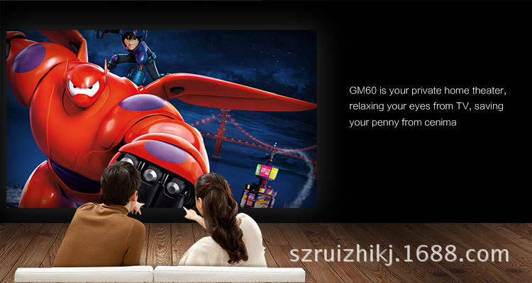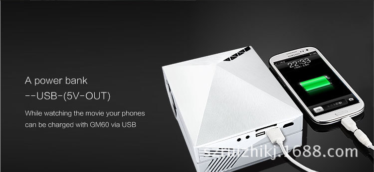 新款GM60 迷你微型投影仪 家用高清LED1080P投影机800*480像素