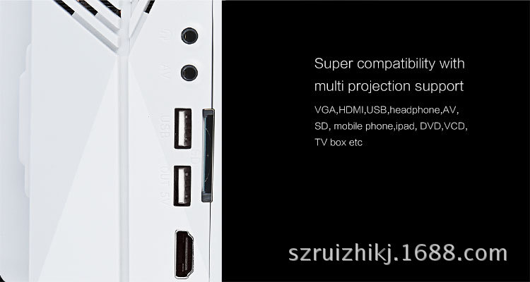 功能:可读取U盘,移动硬盘,SD卡,另配VGA HDMI连接电脑,AV连DVD,机顶盒