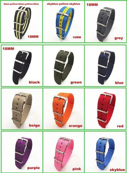 | [해외]뜨거운 판매! 새로운 도착 20 색상 가능-도매 10 개 고품질 18 미리메터 나일론 시계 밴드 nato 스트랩 방수 시계 스트랩 |