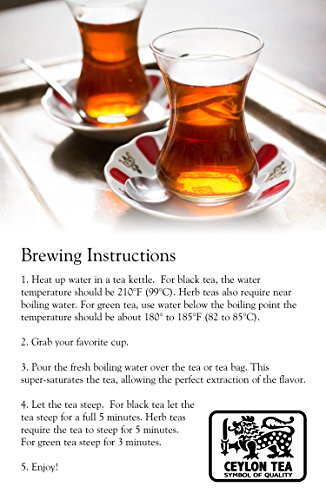 Feature : 100% Pure Black Tea, Packed in Sri Lanka and Garden Fresh / Aromatic, robust medium-full bodied Single Origin tea in a designer packaging / Rich in antioxidants and heart healthy flavonoids / Biodegradable and compostable Tea bags, threads and tags. Think recycle! / 2 Boxes of 100g each, great for home or office use.