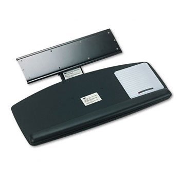 -. Feature : Sold as 1 EA. All-in-one keyboard platform with 5-1/2" height range, 360 swivel and +15/-15 tilt. / Easy height and tilt adjustment; just loosen knob, position tray as desired, then re-tighten knob. / Mousing surface can be positioned right or left. / Full-width leatherette gel wrist rest with antimicrobial product protection. / PreciseTM mousing surface extends battery life.
