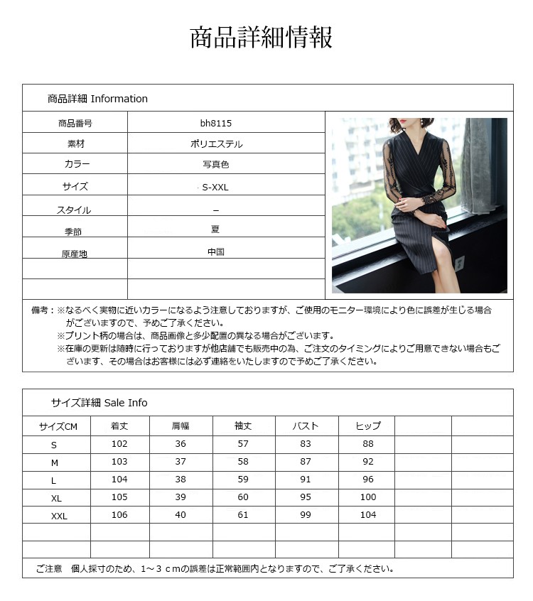 ■素材:ポリエステル■カラー:写真色■サイズ:S着丈102肩幅36袖丈57バスト83ヒップ88M着丈103肩幅37袖丈58バスト87ヒップ92L着丈104肩幅38袖丈59バスト91ヒップ96XL着丈105肩幅39袖丈60バスト95ヒップ100XXL着丈106肩幅40袖丈61バスト99ヒップ104■原産地:中国