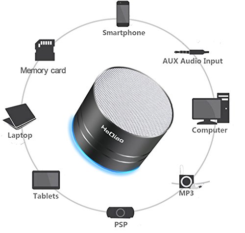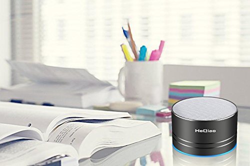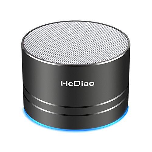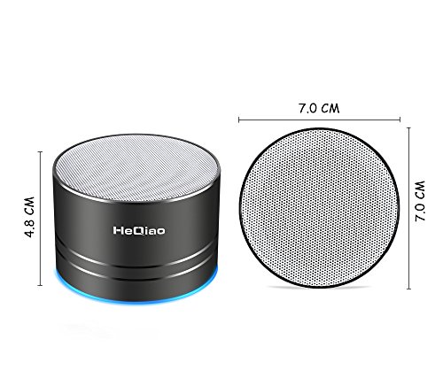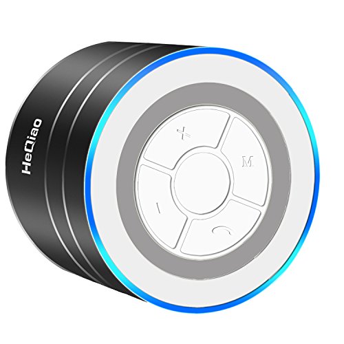 HeQiao Wireless Speaker Aluminum-Alloy LED Portable Bluetooth Speaker Crystalp Stereo HD Bass Shower Seaker for iPhone Samsung Phones Tabltes Computers (Black)(Microphone, Micro SD/TF Card Support)