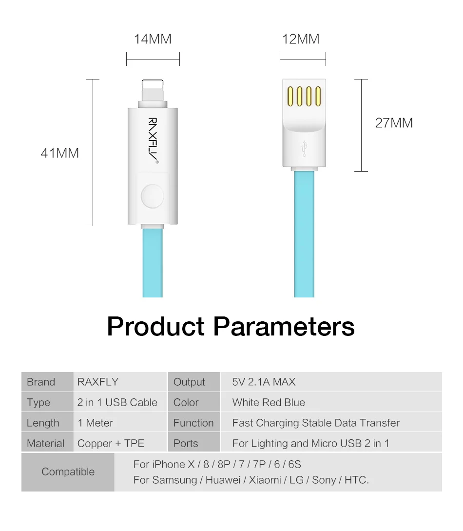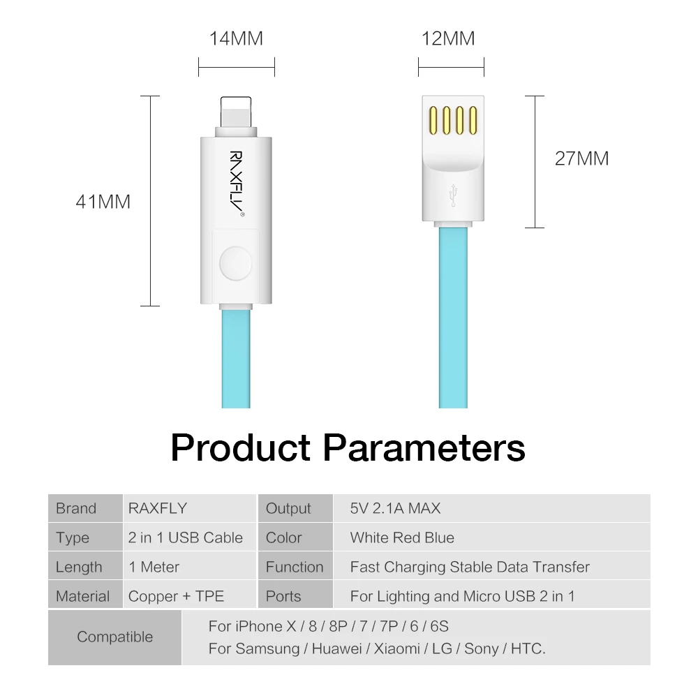Name:RAXFLY 2 in 1 Micro Lightning to USB Cable