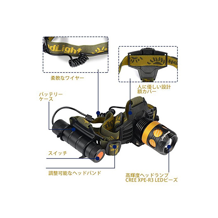 원본상품명: SIAYI(しあい) ヘッドライト 防水 LEDヘッドランプ 充電式 高輝度LEDヘッドライト無段階ズ?ム機能 3種の点?モ?ド ?中電?とヘッドライト?用 取り付け簡? 充電池付き 超?力 防災 ?