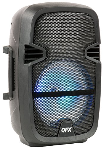 QFX portable party speaker has you covered for any occasion. This versatile PA speaker rolls on in to events to pump out music or amplify announcements. Much like a suitcase, it has a handle and wheels, so it'll be easy to transport. Once it's in place, it can stream music from a variety of sources: wirelessly via Bluetooth-enabled devices, through USB and TF card slots, or connected with a cable through the aux-in port. No matter what you're playing, the speaker's 8" woofer and amplifier ensure that everyone can hear clearly. The rechargeable battery lasts for hours so you can stream music even in places without an outlet nearby. QFX leads the market in lifestyle consumer electronics by delivering innovative product designs and exceptional performance to value-conscious consumers without compromise. With three decades at the frontline of quality electronics, QFX stands firm in its commitment to offer the latest in Bluetooth audio, tailgating and DJ speaker systems, LED T.V.S, and many other prosumer multimedia solutions, affording budget-focused families, businesses, and everyone in between, industry-leader quality without breaking the bank. From freshman dorm to alumni tailgate party, from first apartment to family home, QFX has the gear you need at the price you want!Feature