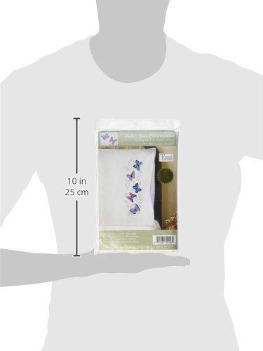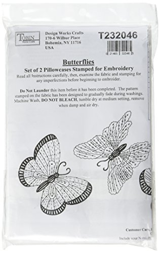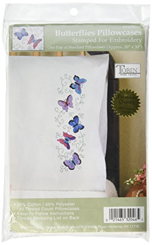 Tobin Stamped Pillowcase Pair Stamped Cross Stitch Kit for Embroidery, 20 by 30-Inch, Butterflies