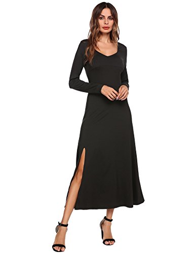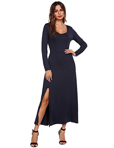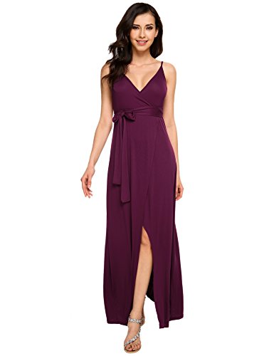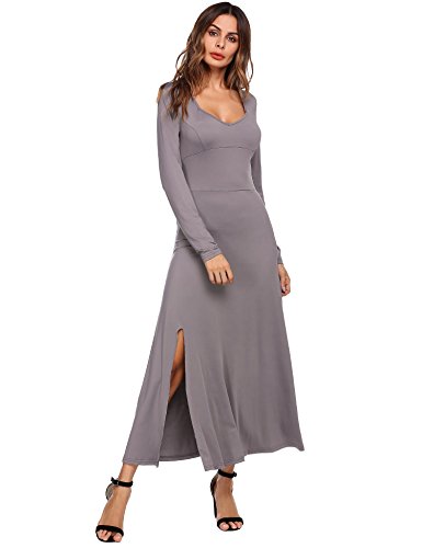 The women's sexy deep v neck backless split maxi party dress with high waist and side split show skinny,long legs,womanly curves,femininity sexy and sophisticated.