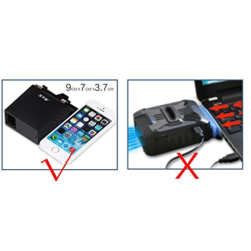 -. Feature : ✔ MILITARY SILENCE DESIGN: With cylindrical silencer design and built-in silencer sponge, this laptop cooler takes advantage of German military technology to minimize the noise during heat rejection and heat dissipation, creating a noise-free environment for you. / ✔ FLASH COOLING: This silent notebook cooler is with vacuum fan, can accelerate heat dissipation from your laptops, rapidly reduce both surface and internal CPU/GPU temperature by 50℉ to 85℉ in few minutes, which is far better than other cooling fans. Thus it stabilizes the operation of your device and prolongs its lifetime. / ✔ EASY TO USE & SPEED CONTROL: Attach this USB powered fan to your laptop by a adjustable clip, it applys high quality turbine cooling motor, with 5 different levels selectable to control the cooling degrees to meet gaming or working need. / ✔ WIDE COMPATIBILITY: This external cooling fan is compatible with 14"-17" different thickness laptops because of its adjustable clip, such as Apple, Hp, Alienware, Dell, Lenovo, ASUS, etc. NOTE: the height is about 0.4-1.3 in, edge between the keyboard and the side > 0.4in, vent length between 3-3.3 in. [Doesn't work with ultra books and Mac products] / ✔ MINI SIZE: So convenient and portable (100g) to carry to wherever you want because the size(3.54 X 2.75 X 1.45in) is even smaller than a iphone 5! Just put it in your laptop bag and let it looks invisible.
