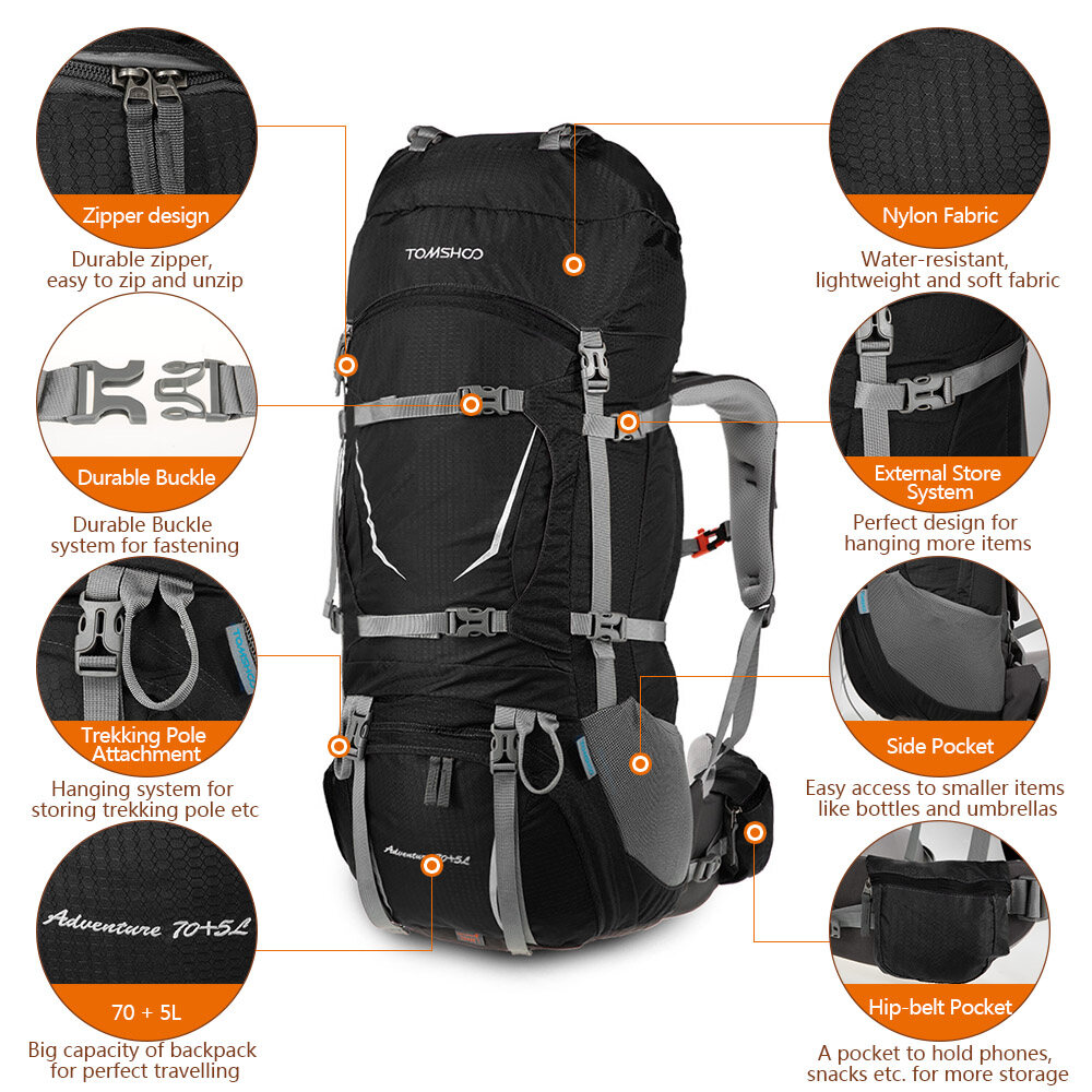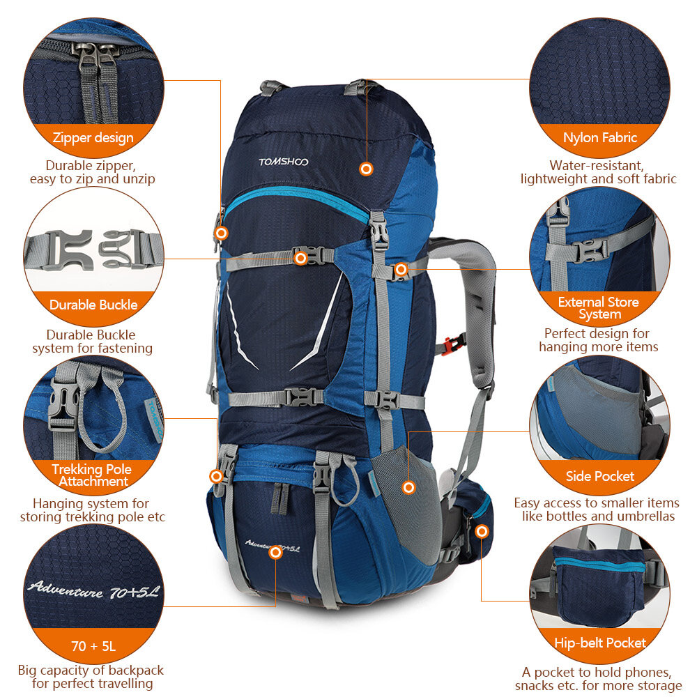 TOMSHOO backpack, with multi-functional design and good solid bearing system, will give you a wonderful experience for outdoors.