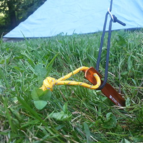 MADE FROM 7075 PROPELLER AEROSPACE ALUMINUM ALLOY: The combination of our UNIQUE propeller shape and 7075 equal much higher tensile strength than any "Y" designed aluminum alloy tent stake on the market. You won’t have to worry about the hassle of a broken tent peg in the backcountry.