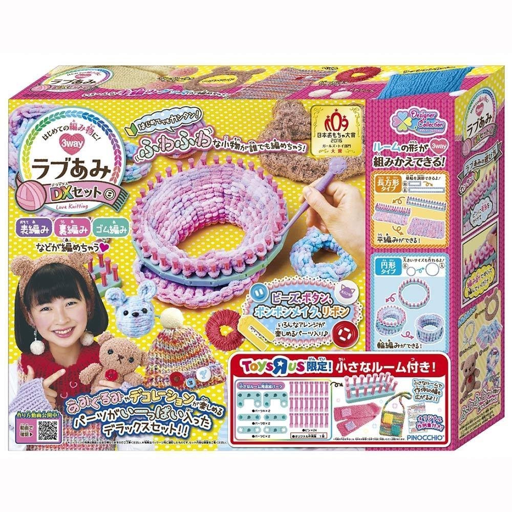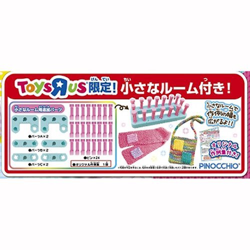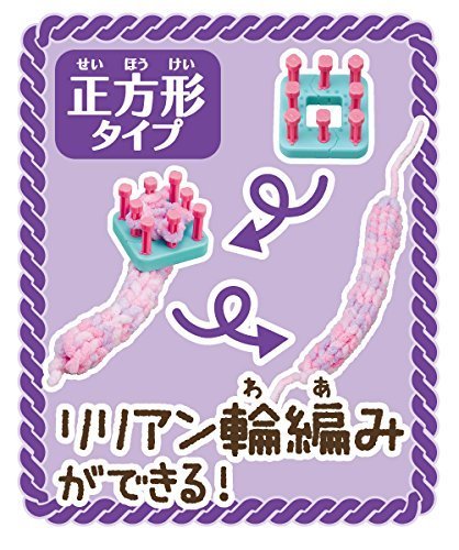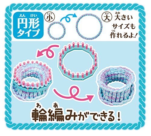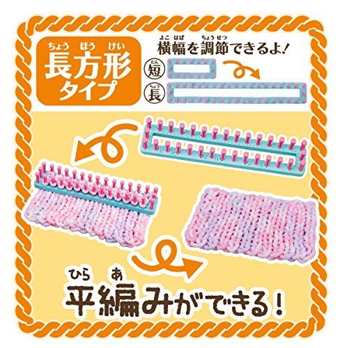 本体サイズ :幅34cm×高さ4cm×奥行5cm 主な製造国 :中国 対象年齢 :6才以上 <セット内容>本体パーツA(4個)B(11個)C(11個)、ピン(72本)、編み針 、とじ針、毛糸(3色)、リボン、シール(デコ用)、ボタン大小(4個ずつ)、ボタンデコ、ハートクリップ、目・鼻パーツ、わた、ビーズ3色、ポンポンメイク(大小)、取扱説明書、オリジナル作例集 <主な材質>ABS・PP・POM 等 製造国:中国 あみかたDVD付属