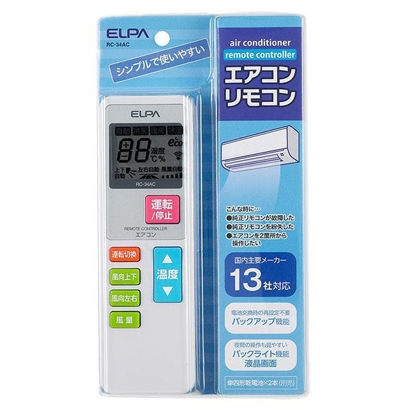 | 主要メーカー13社のエアコンに対応の互換リモコンです。夜間の操作に便利なバックライト機能付液晶画面。エアコンの主な操作が可能です。再設定不要のバックアップ機能も搭載しています。(※ご使用の際は初めにメーカーコードの設定が必要です。 ) |