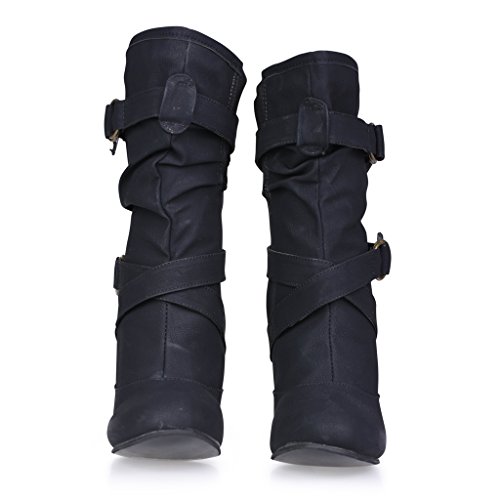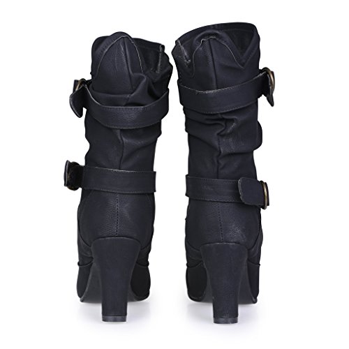 -. Feature : Faux Leather Upper / 3" Heel / Buckle Straps / 15.5" (approx.) Opening Circumference / Shaft Measures Approx. 12" from Arch