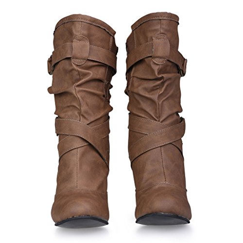 -. Title : Twisted Women's Lillian Wide Width, Wide Calf Faux Leather High Heeled Fashion Mid Calf Boots